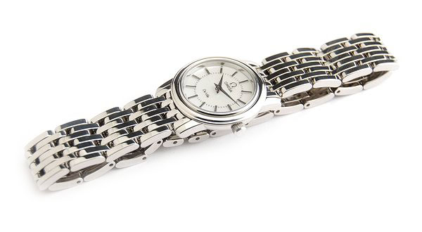 ●オメガ デ・ビル●商品名:4570.72 デビル プレステージ●タイプ:ユニセックス●状態:中古Aランク●色/素材:SS●サイズ:直径22mm-バンド内径約180mm ●クォーツ●シェル文字盤●生活防水●付属品:無し