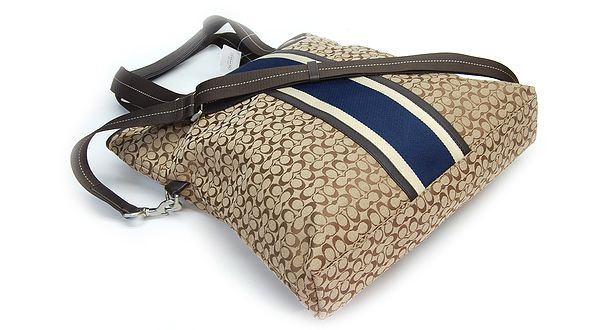 ●コーチ シグネチャー●商品名:70773 シグネチャー ジャガード ストライプ 2WAYトートバッグ●タイプ:ユニセックス●状態:新古品●色/素材:カーキブラウン/ネイビー / キャンバス ●サイズ:約W36cm×H40cm×D10cm ●素材:キャンバス/レザー素材●カラー:カーキブラウン/ネイビー●付属品:無し●未使用展示程度