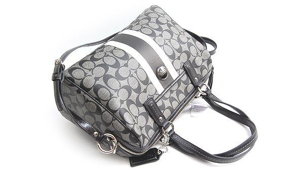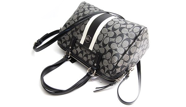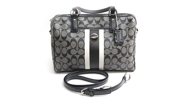 ●コーチ シグネチャー●商品名:24362 シグネチャー ストライプ サッチェル 2way ミニボストンバッグ●タイプ:レディース●状態:新古品●色/素材:グレー/ブラック系 / PVC・レザー●サイズ:約W31 x H20 x 16cm ●サイズ:約31x20x16cm●ショルダー:約115〜140cm●素材:PVCコーティングシグネチャーキャンバス/レザー●カラー:グレー/ブラック系●付属品:無し●未使用展示程度